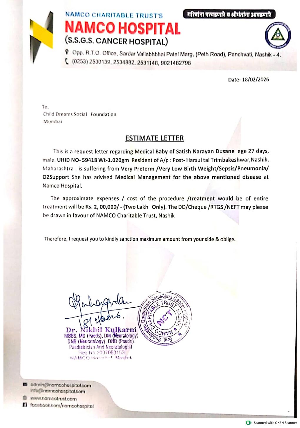 treatment so, we requesting you to please save this child's life as the child needs